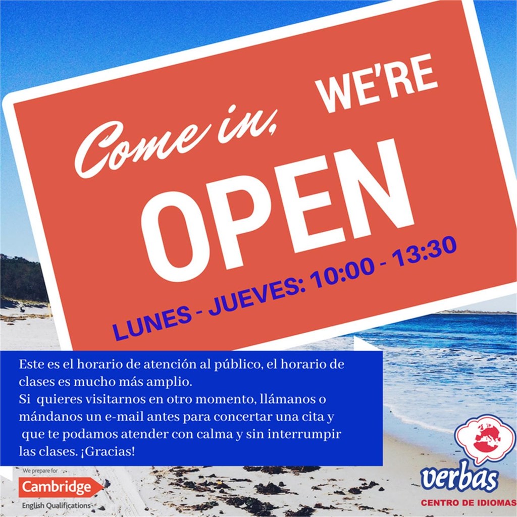 Con la llegada del verano tenemos nuevo horario de atención al público. Recordad que el horario de clases es mucho más amplio. ¡Os esperamos!